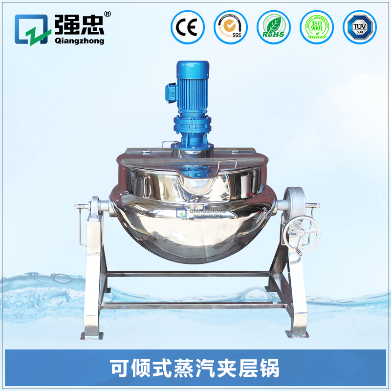 锅体是由内外球形锅体组成的双层结构形式,中间夹层通入蒸汽加热,有固定式、可倾式等样式。夹层锅已蒸气为源,具有受热面积大、热效率高、加热均匀、加热时间短且温度容易控制,物料搅拌形式采用刮底、刮边、不粘锅、无搅拌死角、搅拌均匀;锅体内外壳均为不锈钢材料制造,符合卫生安全要求、附件齐全、外形美观、安装及操作简单方便、安全可靠。